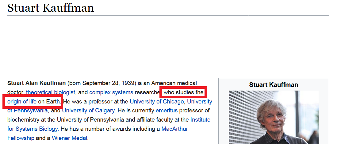 يُقرر واحد من أكبر علماء الأحياء، وهو عالم متخصص في أبحاث بداية الحياة، يُدعى: ستيورات كوفمان.