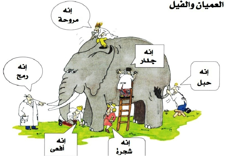 فالذي لمسَ ناب الفيل قال باجتهاده العقلي وخبرته: هذا رُمح!