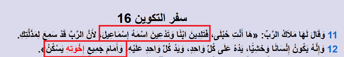وهذا ما تُقرره التوراة نفسها... تقول التوراة عن إسماعيل: وَأَمَامَ جَمِيعِ إِخْوَتِهِ يَسْكُنُ.