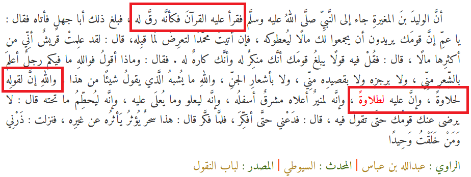 والسؤال هنا: ما المانع أنْ يُسلم الوليد كما أسلم ابنه... خاصَّةً وأنه تأثر بالقرآن جدًّا؟