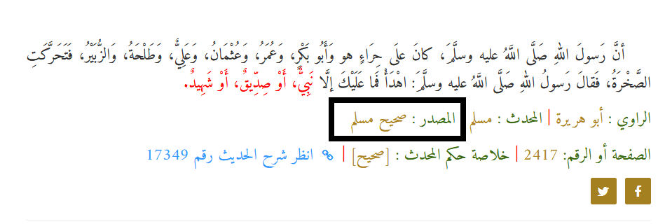 13- وتنبَّأ بأنَّ عُمَر وعثمان وعلي وطلحة والزبير لن يموتوا على فُرُشهم كما يموت الناسُ، وإنما سيموتون شهداء ووقع كما تنبَّأ صلى الله عليه وسلم .