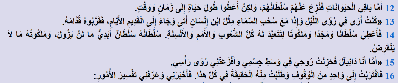 بعد ثلاثمائة وخمسين عامًا ستأتي آخِرُ الأمم... قِدِّيسِو الْعَلِيِّ، الذين ستبقى شريعتُهم إلى قيام الساعة، ويملكون الممالك، بل ويملكون مملكة هذا الملك الحادي عشر نفسها.