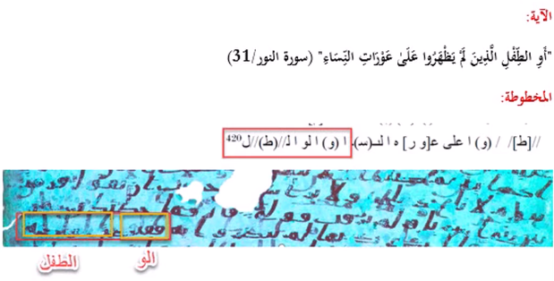 فتذكر أنَّها (أَوِ الطِّفْلِ} وليس أو الولدان، فقام بمسح آخر 3 حروف من كلمة الولدان، وترك بقية الكلمة فظهرت بهذه الصورة بالأسفل: