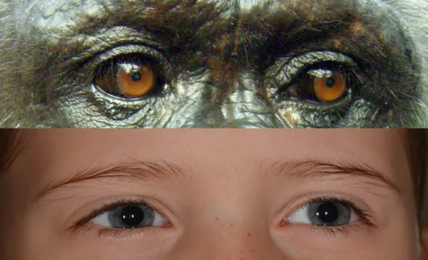 فمن المعلوم أنَّ كل القردة لون العين لديها بني غامق.
