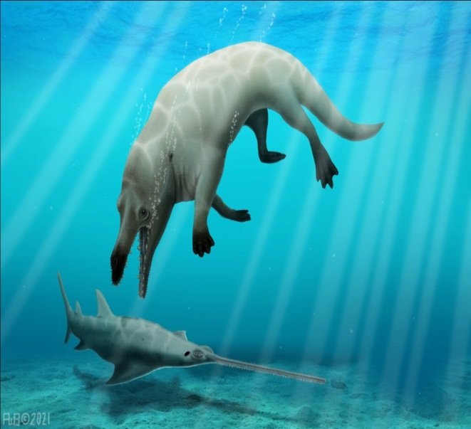 وافترض الباحثون أنَّ هذا النوع من الحيتانِ بأربعة أرجُل، وطلبوا من الفنانين رسم الصورة المتخيلة.