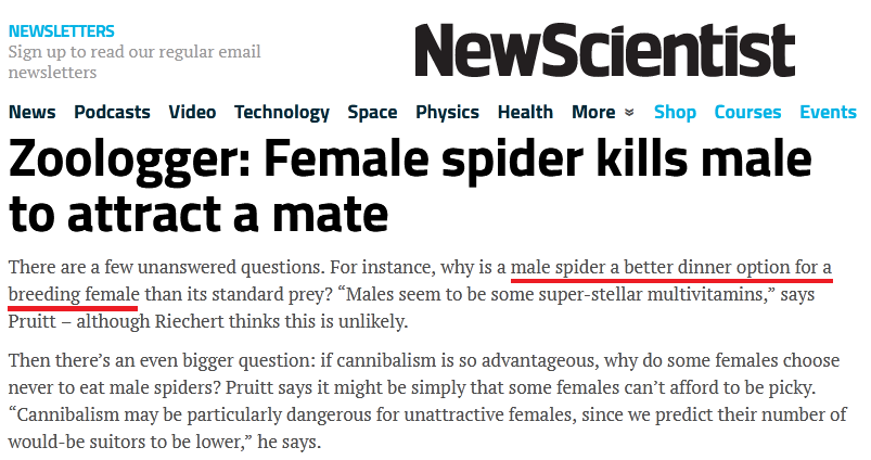 وإلا فبعض إناث العناكب تأكل الذكور أحياءً.