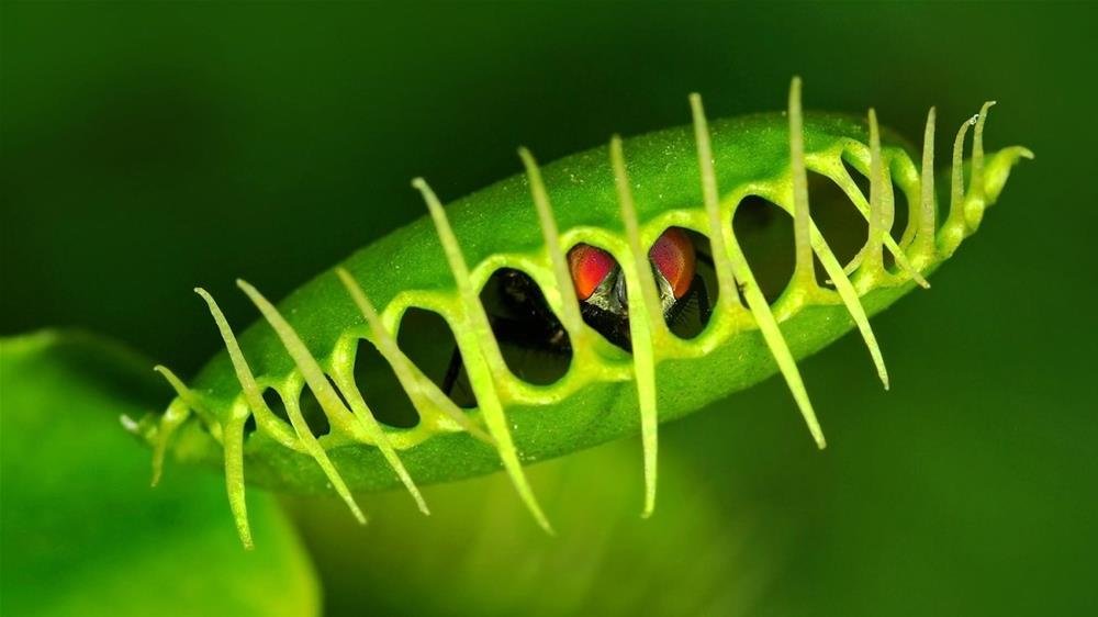 وهناك نباتات كنبتة الصبار ذات الفكين تقبض على الحشرة بمجرد وقوفها عليها.