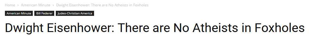 فالجندي ولو كان من دول المحور الملاحدة، ما أن ينزل إلى أرض المعركة حتى يعود لله، فقال إيزنهاور كلمته الشهيرة: "لا يوجد ملاحدة في الخنادق".