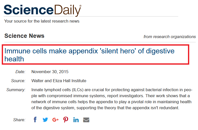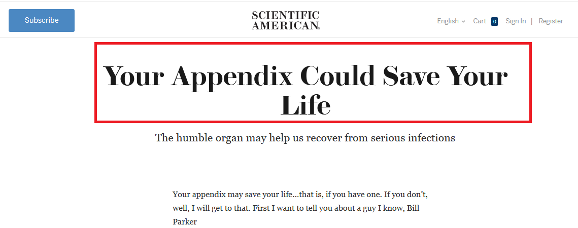 بل والزائدة الدودية قد تُنقذ حياتك، وهذا عنوان لمقال آخر للـScientific American.