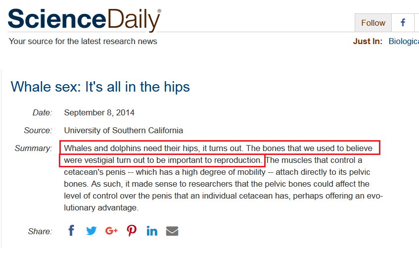 تقول مجلة الساينس دايلي Science Daily في مقالٍ لها: "العظام التي تخيَّلنا أنها بقايا تطوُّر تبيَّن أنها هامة لعملية التكاثر"[1].