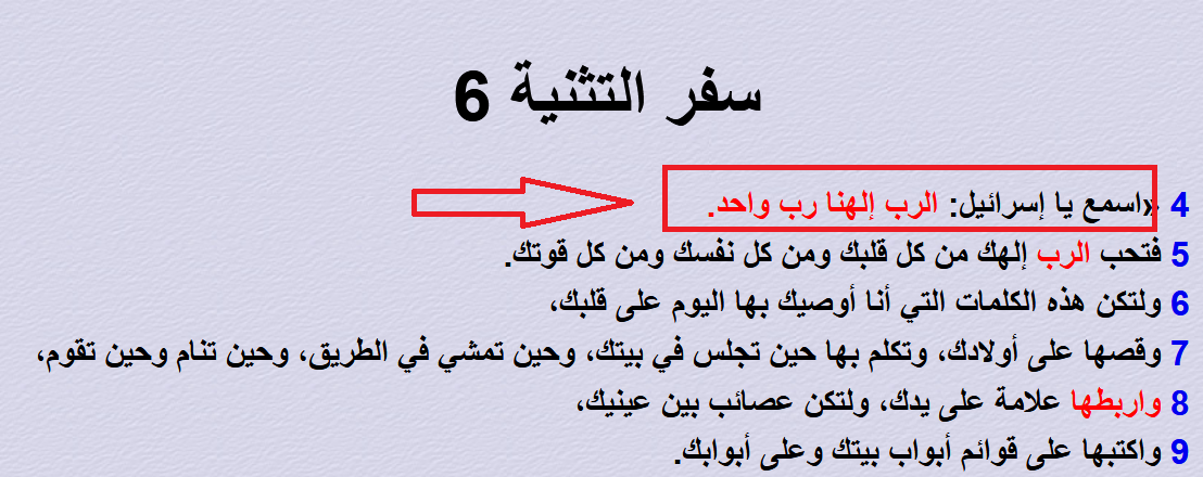 فكما ورد على لسان موسى عليه السلام في سفر التثنية: "الربُّ إلهنا ربٌّ واحدٌ".