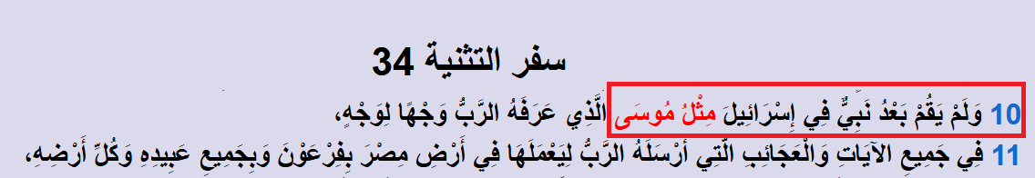 بل إنَّ الكتاب المقدس يُقِرُّ أنَّه لم يقم نبيٌّ في بني إسرائيل مثل موسى عليه السلام !
