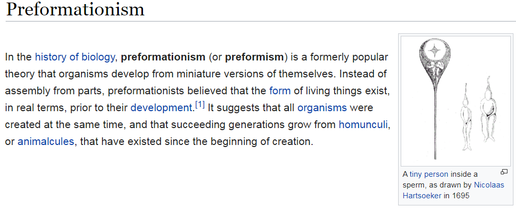فهو هنا سيبدأ في التخلق، وليس أنَّ جنينًا قزمًا كان مختبئًا في مَنيِّ الرجل سيبدأ في التضخم، كما كان يتصور جالين!