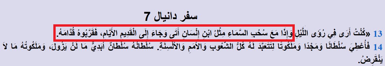 كُنْتُ أَرَى فِي رُؤَى اللَّيْلِ وَإِذَا مَعَ سُحُبِ السَّمَاءِ مِثْلُ ابْنِ إِنْسَانٍ: أتى هذا النبي مع سحب السماء.