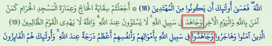 لكن في المراجعة أضاف واوًا وألفًا بعد كلمة (وَجَاهَدَ} فجعلها: وجاهدوا.