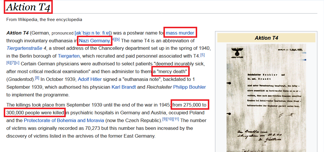 قبل سنوات قليلة وفي ظل الإلحاد في أوروبا ظهر معسكر أكشن تي فور Aktion T4، والذي تم فيه تطبيق الانتخاب الطبيعي على البشر عمليًّا.