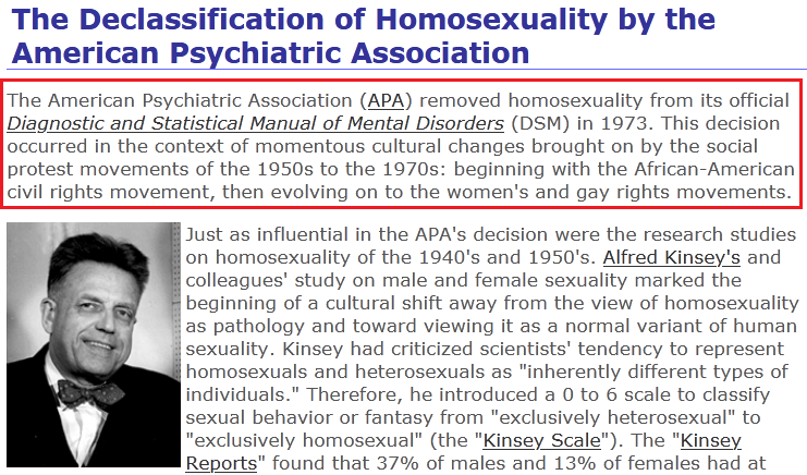 فالرابطة الأمريكية للطب النفسي أُجبرت على حذف الشذوذ الجنسي من الأمراض العقلية.