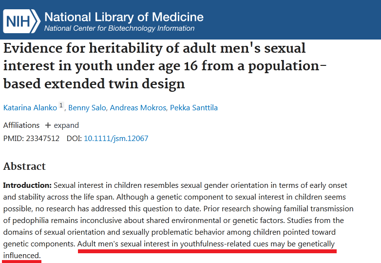 هناك جينات لها عَلاقة باشتهاء الأطفال Pedophilia فهل بهذا يصير اشتهاء الأطفال مباحًا؟