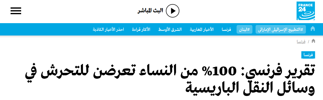 ووصلت معدلات التحرُّش في المواصلات في بلد ينتشر فيها الإلحاد بشدة كفرنسا إلى 100%.